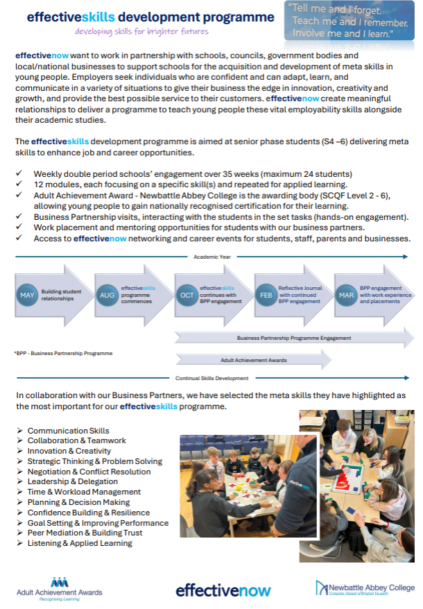 Effective Now - offer an Adult Achievement Award - recognising work skills gained through employer engagement